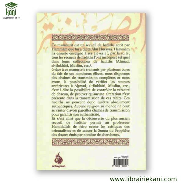 Ce manuscrit est un recueil de hadiths écrit par Hammâm après avoir été dicté par Abû Hurayra. Hammâm l’a ensuite enseigné à ses élèves puis incorporé tel quel dans les ouvrages de hadiths (Ahmad, al-Bukhâri, Muslim, etc.).